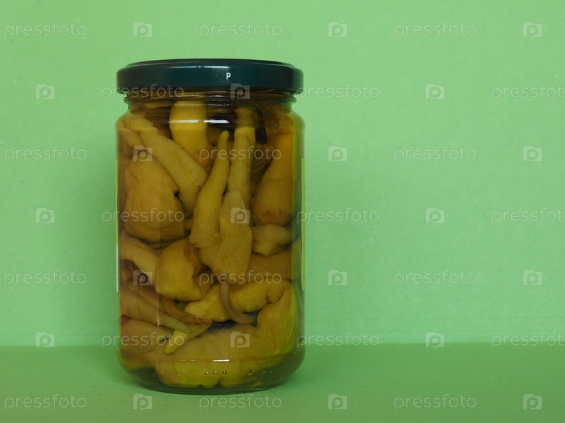 Сладкий перец с зеленым уксусом в банке, вегетарианская и веганская еда