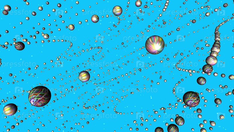 Абстрактный синий фон с блестящими сферами. 3D-иллюстрация, 3D-рендеринг