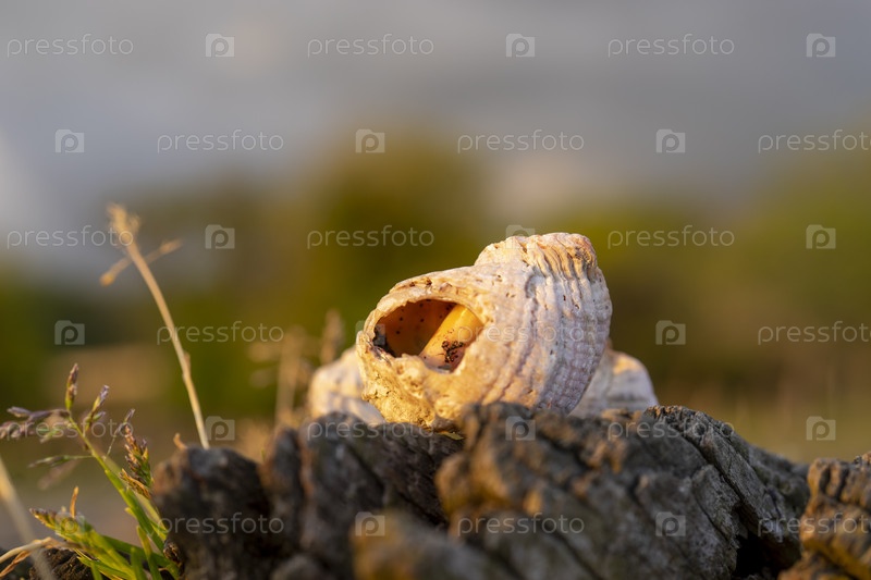 Натюрморт с ракушками на размытом фоне