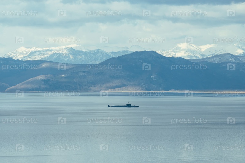 Морской пейзаж с подводной лодкой в Авачинской бухте, Камчатка