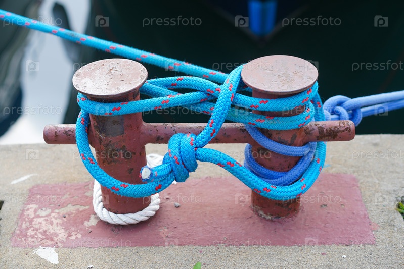Синяя веревка, которая привязывала лодку к металлическому столбу