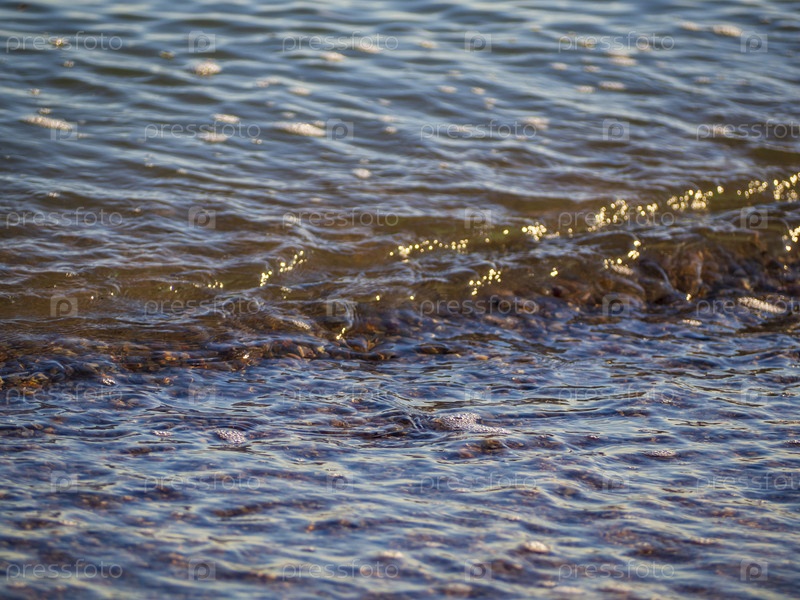 Фоновая поверхность воды на мелководье у берега. Небольшая волна у береговой линии — фактурный фон