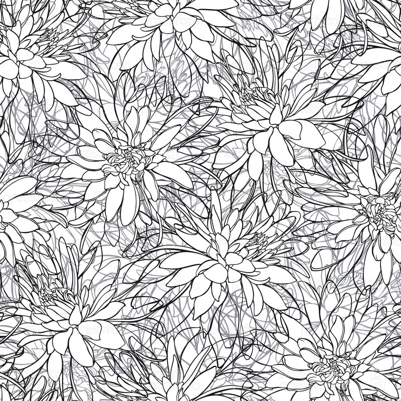 Бесшовный векторный рисунок с цветами на белом. Рудбекия, Золотые шары. Цветочный абстрактный фон. Черное и белое. Линейное искусство. Идеально подходит для обоев, обертывания, ткани и текстиля