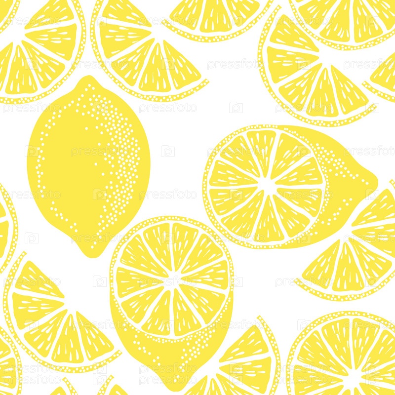 Бесшовный рисунок с лимонами на белом. Нарисованные от руки изображения. Вектор. Идеально подходит для обоев, обертывания, ткани и текстиля