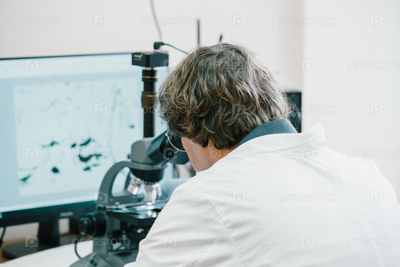 Ученый исследует плесень каннабиса сатива через электронный микроскоп