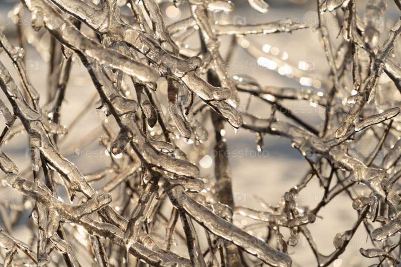Естественный фон с кристаллами льда на растениях после ледяного дождя