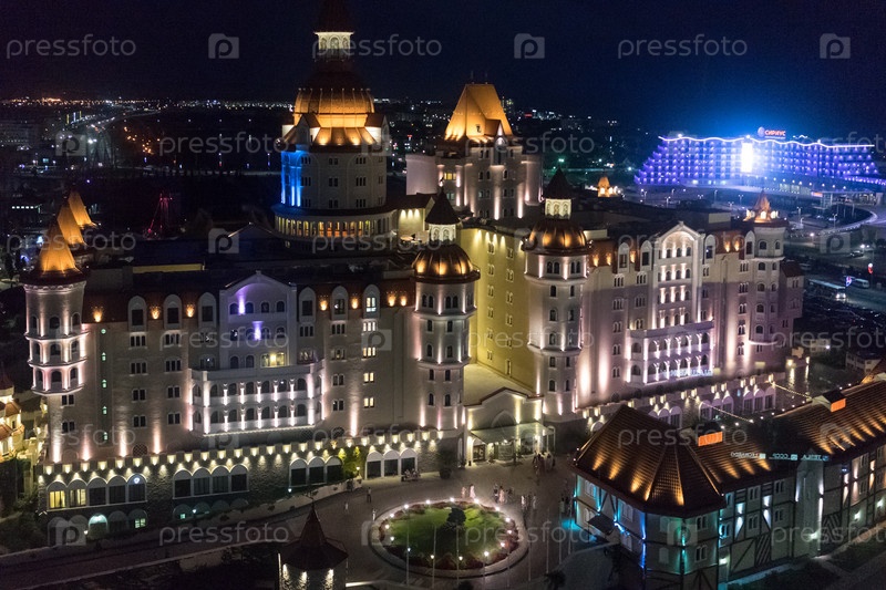 Сочи, Россия-16 сентября 2017 г.: Современный отель в освещении ночных огней