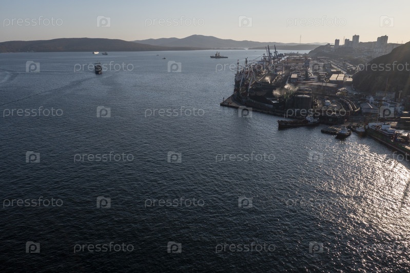 Владивосток, Россия - 24 октября 2021 г.: Морской пейзаж с видом на побережье города и корабли