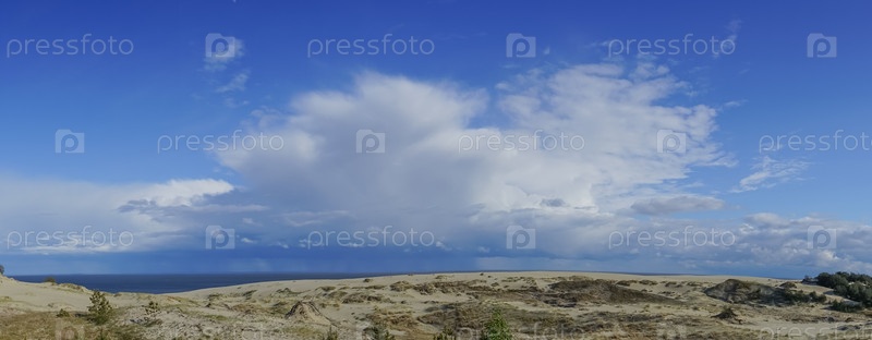 Морской пейзаж Балтийского моря с прибрежными песчаными дюнами Куршской косы
