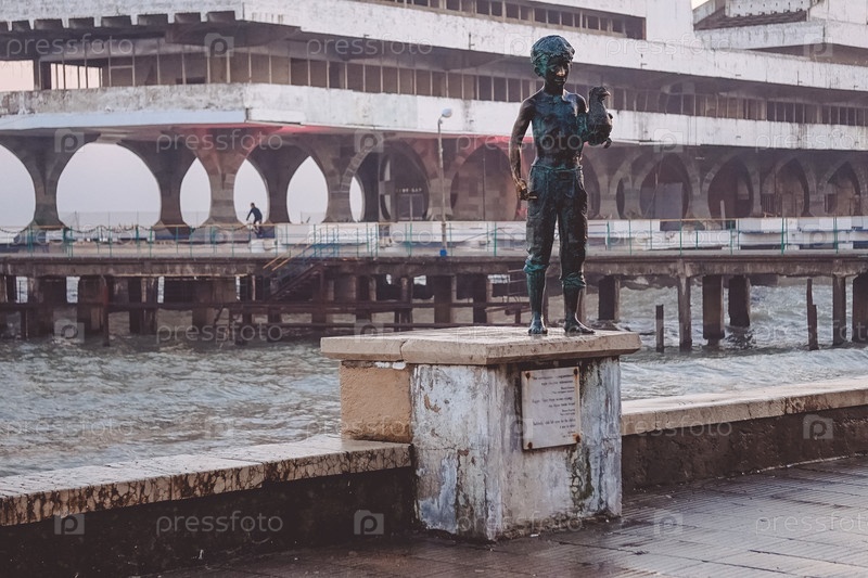 Сухуми, Абхазия-14 января 2015 г.: Морской пейзаж с видом на статую Нахального мальчика с курицей