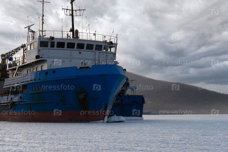 Владивосток, Россия. Старые корабли на закате на стоянке в заливе
