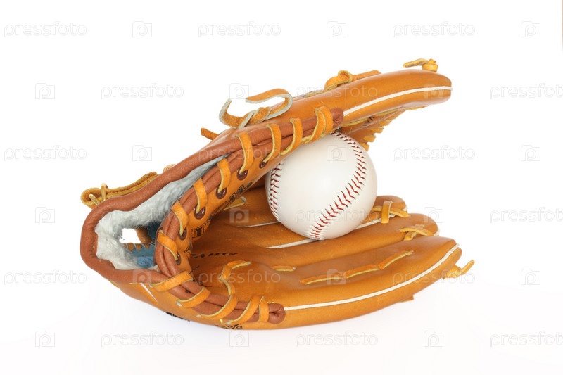 Бейсбольная перчатка с мячом на белом фоне