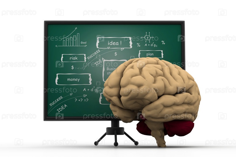 Мозг с стратегией бизнеса на доске. Понятие мозгового штурма