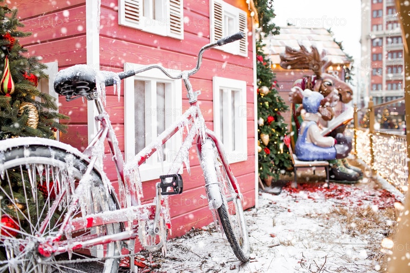 Новогоднее украшение улиц. в классических красно-зеленых тонах. Красивые праздничные пейзажи в городе. Украшенные елки