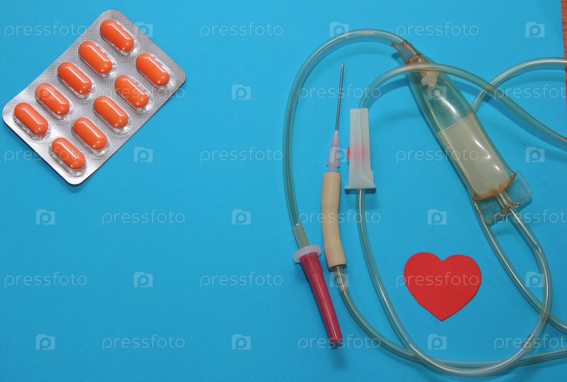 Лечение сердечных заболеваний, таблетки в блистере на синем фоне