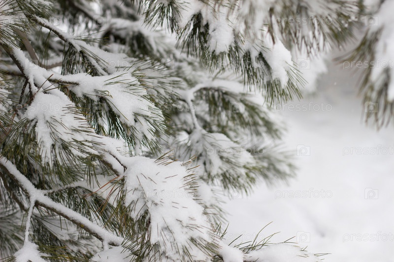 Ветки сосны под тяжестью снега