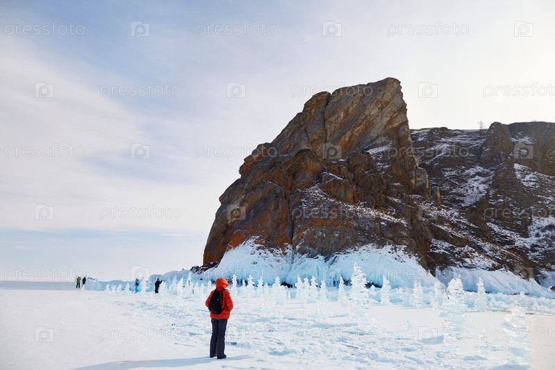 Огромные скалы севера острова Ольхон, покрытые сосульками