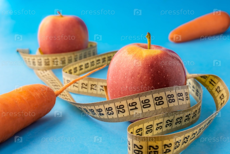 Яблоки с морковкой на синем фоне
