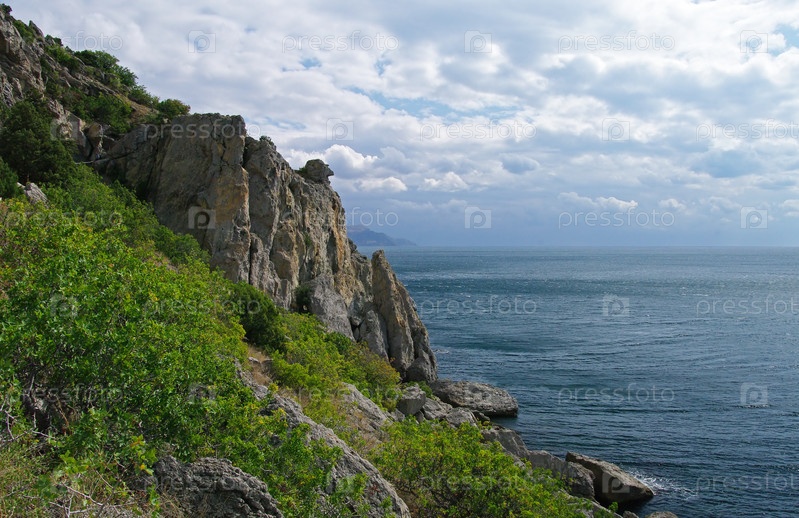 Красивый вид с тропы Голицына. Крым, Новый Свет, облачный день в сентябре
