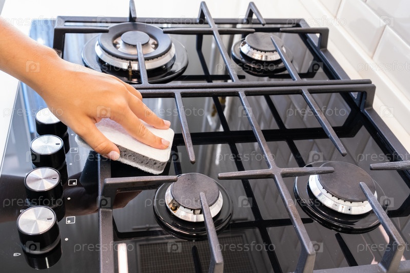 Женская газовая плита для мытья рук с губкой, концепция уборки дома