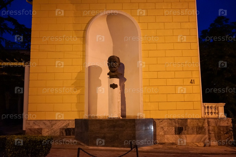 Ялта, Крым-28 мая 2016 г.: Ночной городской пейзаж с видом на здания и архитектуру