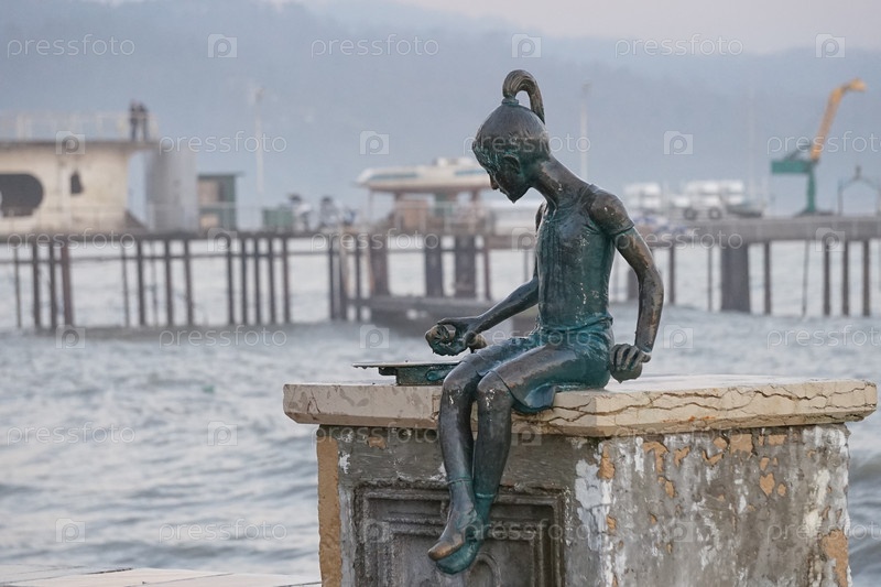 Морской пейзаж с видом на скульптуру девушки Ники