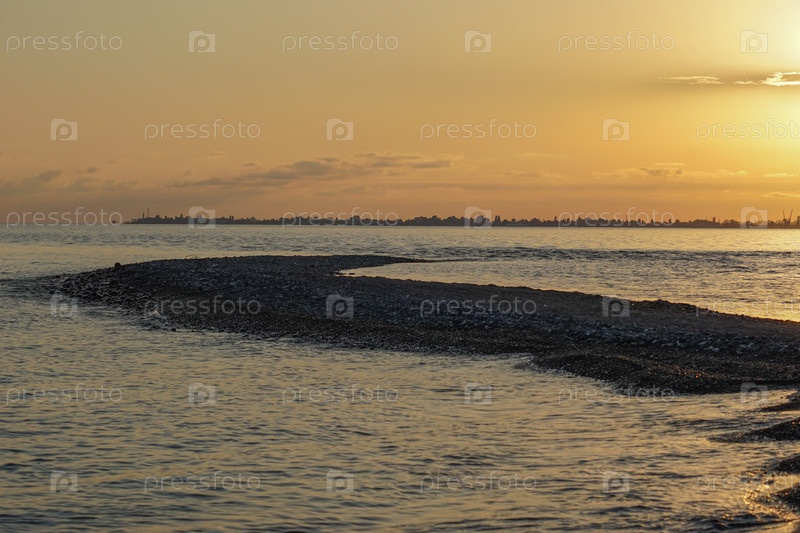 Красивый морской пейзаж с оранжевым закатом