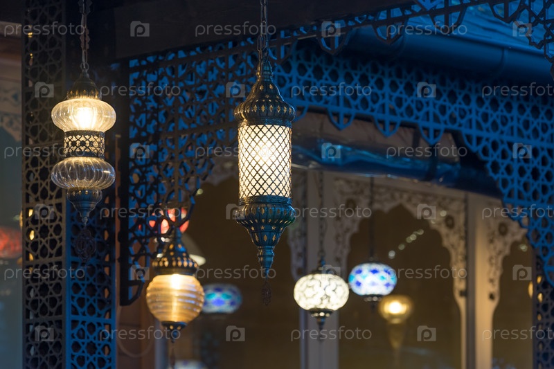 Фон с восточными огнями на фоне деревянной стены