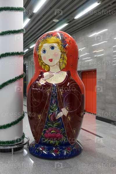 Сочи, Россия-17 января 2018 г.: Матрешка в интерьере Адлерского вокзала вечером