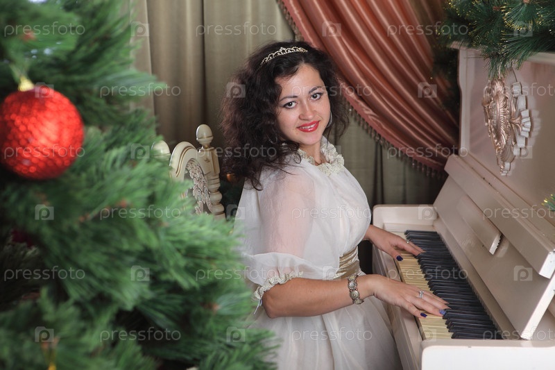 Красивая женщина играет на пианино