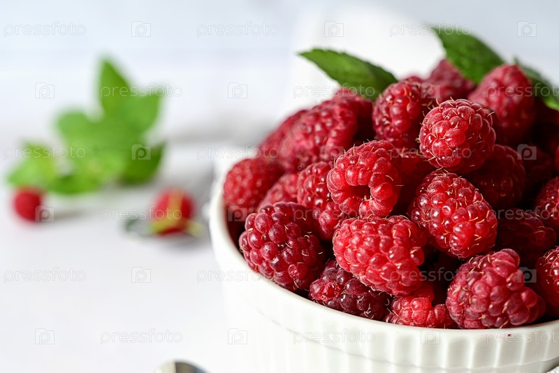 Сочная спелая малина в тарелке на белом фоне спелая малина в белой тарелке на белом фоне, витамины для организма
