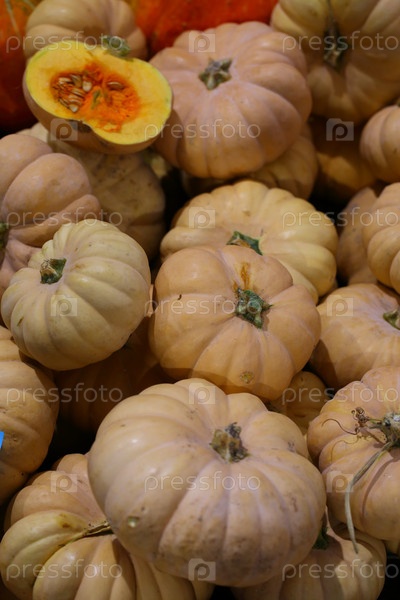 Тыквы на прилавке. Ярмарка