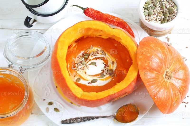 Суп-пюре из тыквы на белом фоне