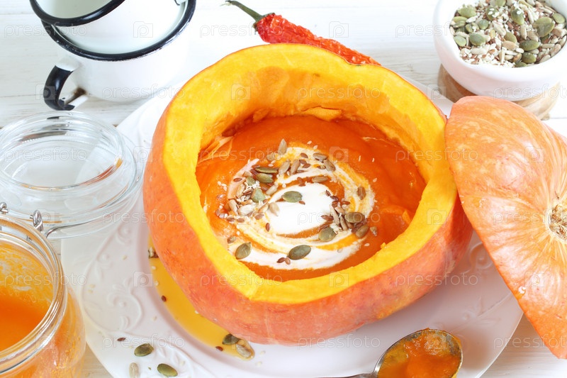 Суп-пюре из тыквы на белом фоне