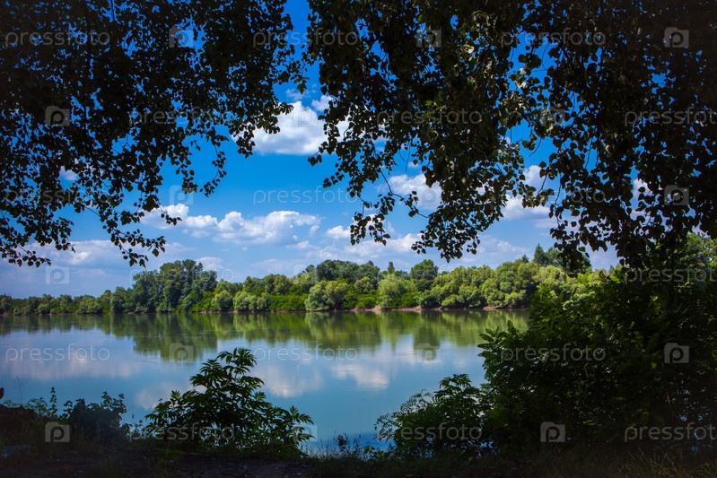 Красивый летний пейзаж с видом на Кубань. Станица Федоровская. Краснодарский край