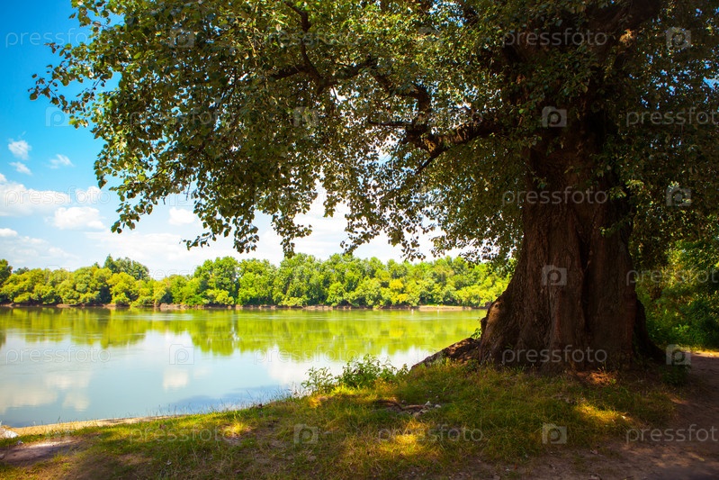 Красивый летний пейзаж с видом на Кубань. Станица Федоровская. Краснодарский край