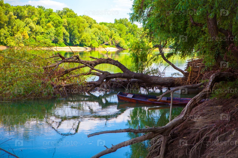 Красивый летний пейзаж с видом на Кубань. Станица Федоровская. Краснодарский край