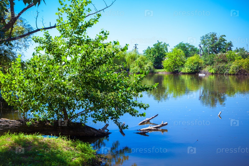 Красивый летний пейзаж с видом на Кубань. Станица Федоровская. Краснодарский край