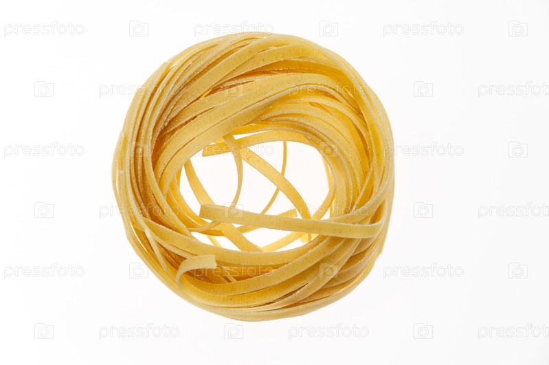 Гнезда сырой пасты на белом фоне