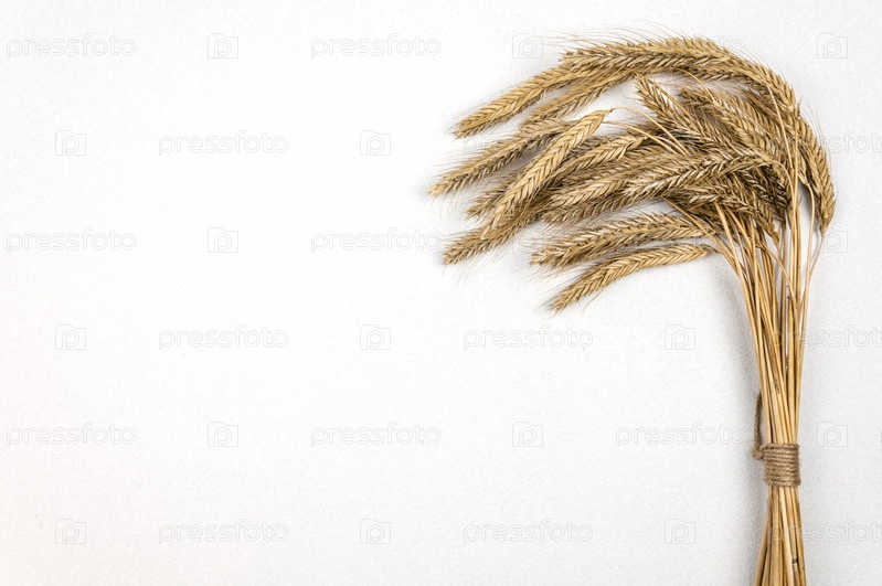 Куча ржаных колосьев на белом фоне. Концепция пекарни