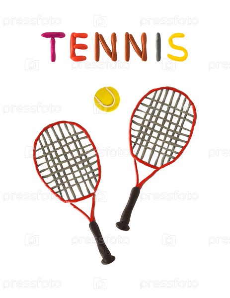 Пластилиновые теннисные ракетки и мяч с текстом на белом фоне
