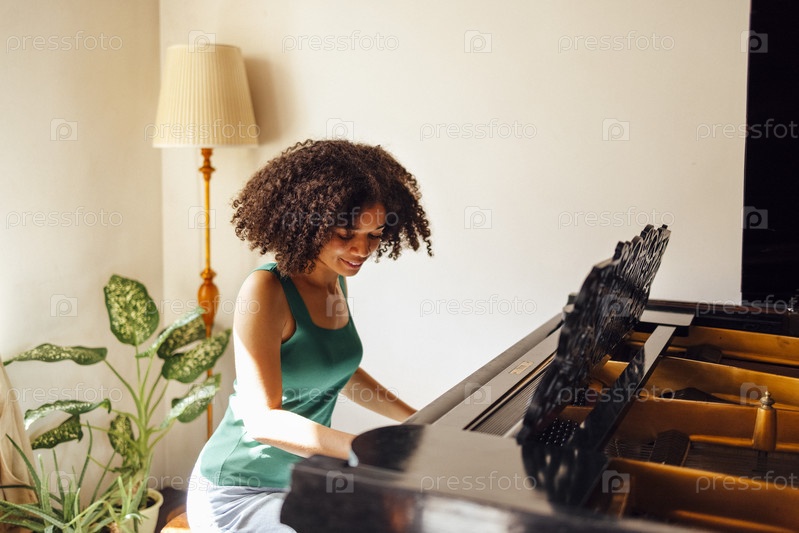Молодая черная леди играет на пианино