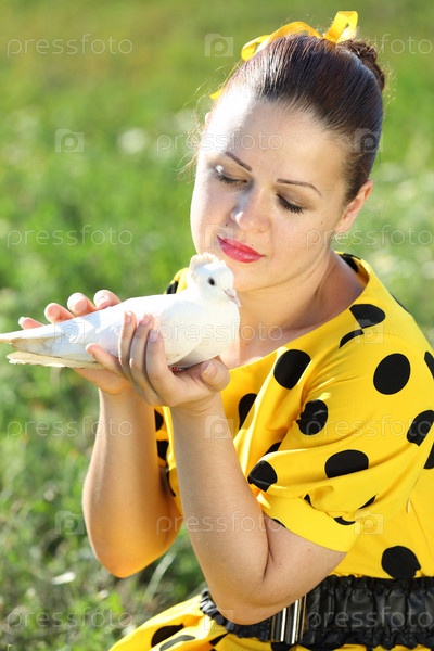 Девушка держит белого голубя