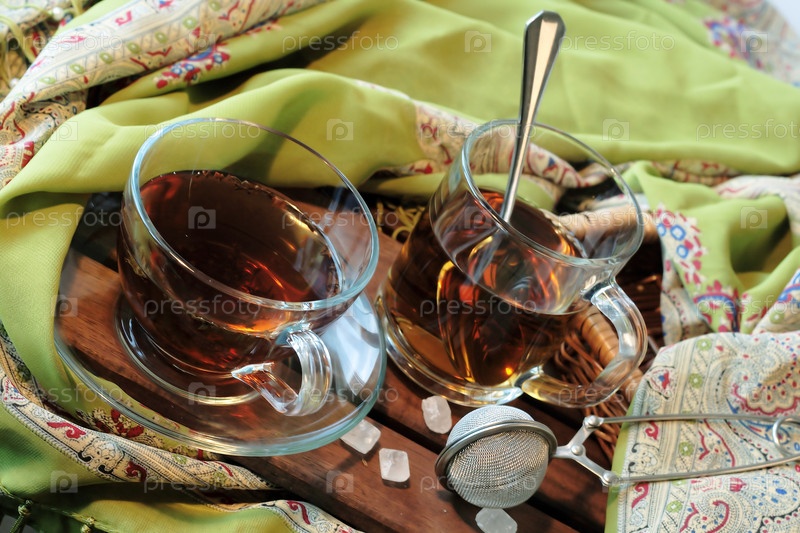 Натюрморт с чаем с корицей, мятой, тимьяном на деревянном столе