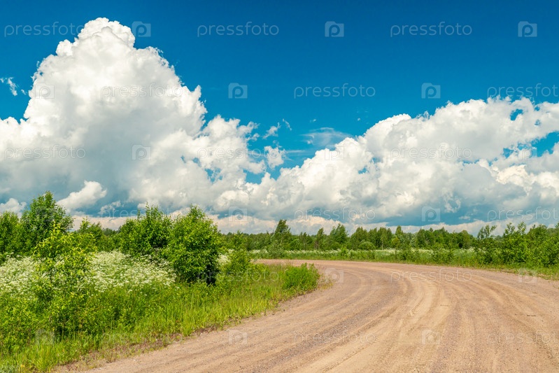 Голубое небо и красивые облака, сельская дорога, Простой пейзажный фон для летнего плаката