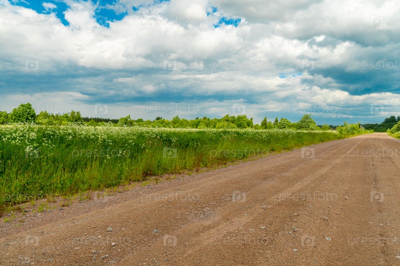 Голубое небо и красивые облака, сельская дорога, Простой пейзажный фон для летнего плаката