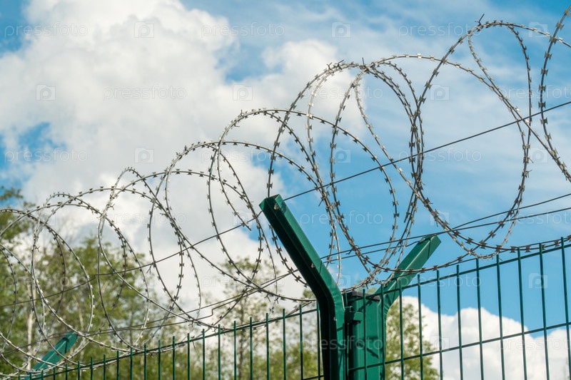 Забор из стальной проволоки на стальных столбах с колючей проволокой