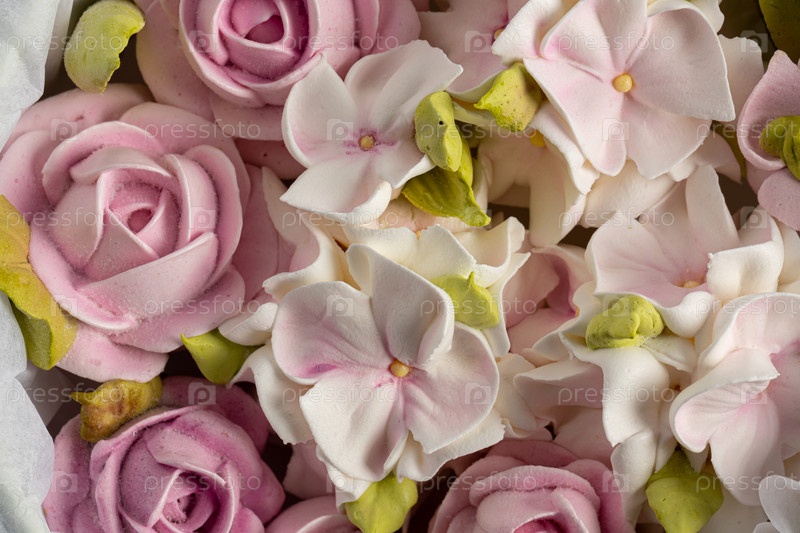 Зефирный букет цветов в подарочной коробке крупным планом, праздничное настроение, День святого Валентина, Международный женский день