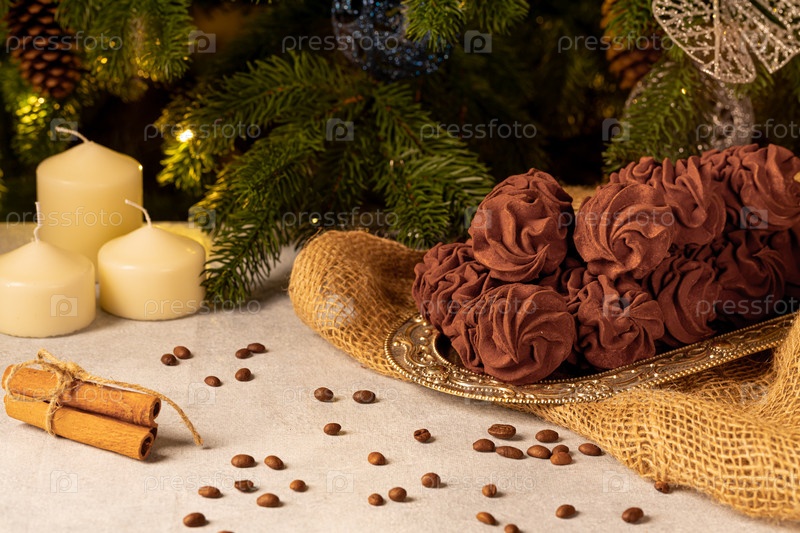 Кофейный зефир с минимальным количеством сахара на Рождество и новый год, здоровое питание. лакомство для гурманов