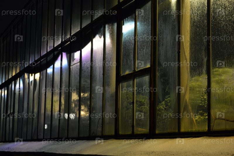 Окна оранжереи зимой. Ботанический сад. Санкт-Петербург